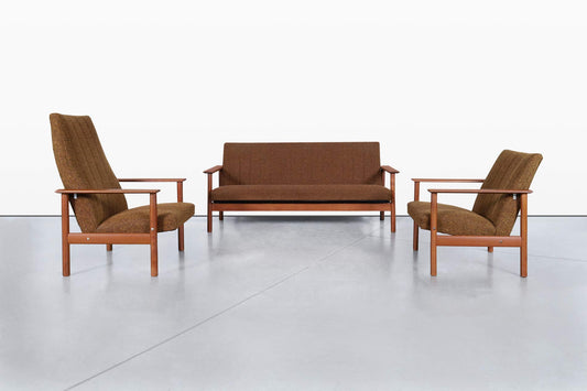 Norwegian Teak and Boucle Sofa Attributed to Fredrik Kayser