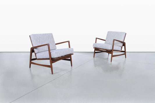Mid-Century Walnut Reclining Lounge Chairs by Ib Kofod Larsen for Selig