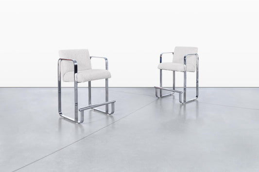 Vintage Boucle and Chrome Lounge Chairs Attributed to Milo Baughman