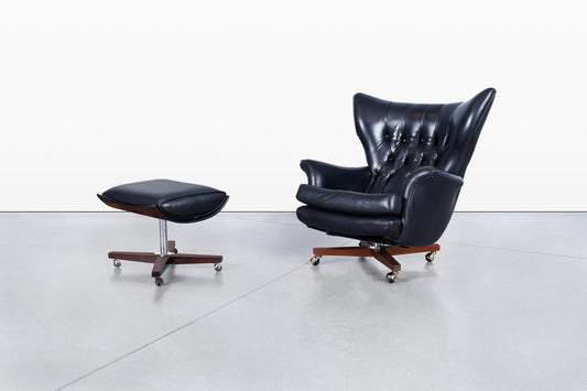 Danish Modern Walnut Reclining Lounge Chair and Ottoman by Ib Kofod Larsen