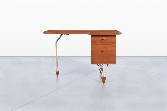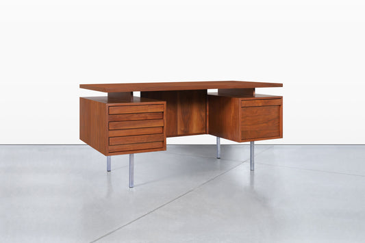 Vintage Walnut and Chrome Executive Desk by John Keal for Brown Saltman