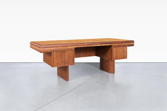 Mid-Century Modern Executive Burl Wood and Walnut Desk