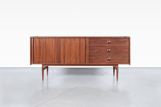 Vintage Walnut Tambour Door Credenza by John Caldwell for Brown Saltman