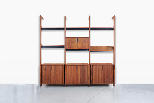 Vintage Walnut Tambour Door Wall Unit by Barzilay