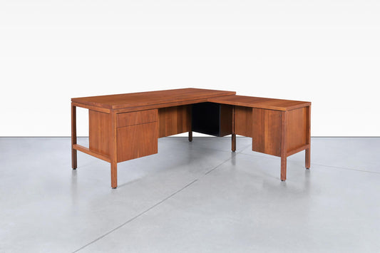 Mid-Century Modern Walnut L-Shaped Desk