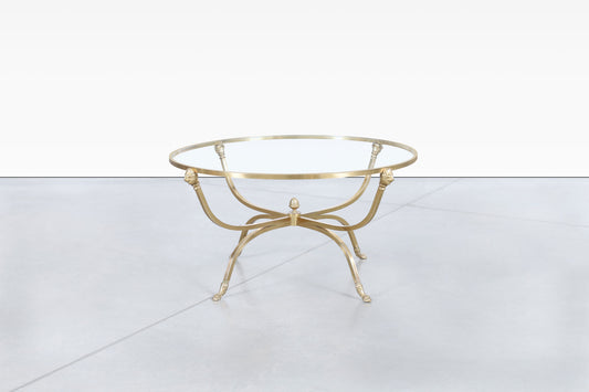 Vintage Italian Brass Lion Heads Coffee Table