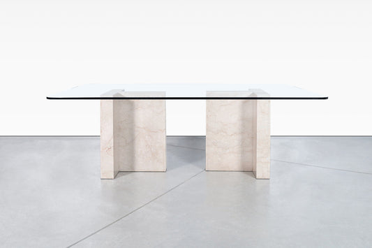 Vintage Italian Marble and Glass Dining Table
