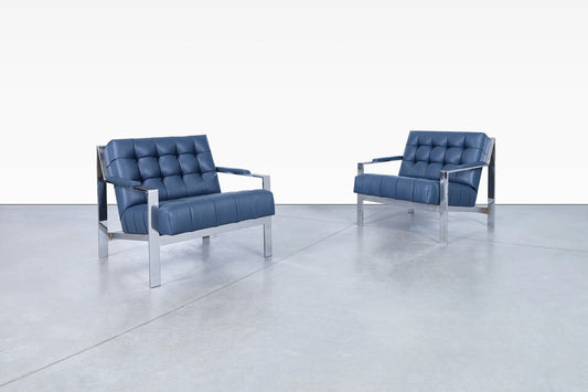 Vintage Leather and Chrome Biscuit Tufted Lounge Chairs by Cy Mann