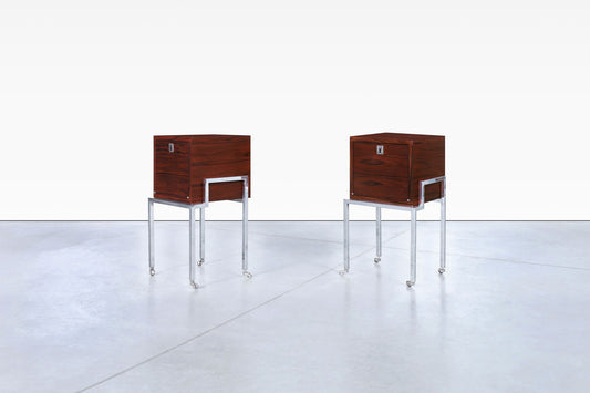 Colombian Rosewood and Chrome End Tables or Nightstands