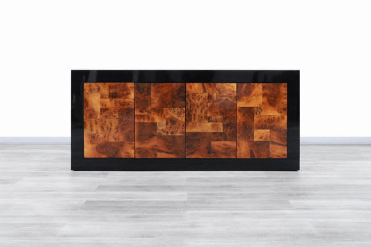 Vintage Burl Wood and Black Lacquered Credenza by Directional