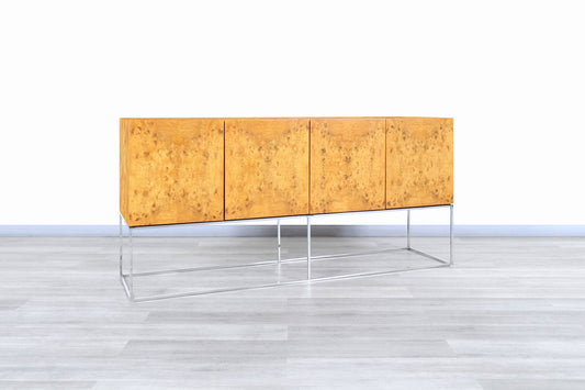 Vintage Burl Wood and Chrome Credenza by Milo Baughman for Thayer Coggin