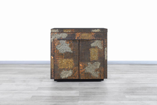 Vintage Patchwork Flip-Top Bar Cabinet by Paul Evans for Directional