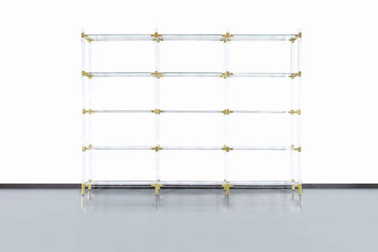Vintage Custom Shelving Unit in Lucite and Brass by Charles Hollis Jones