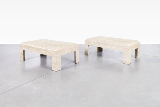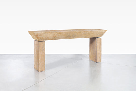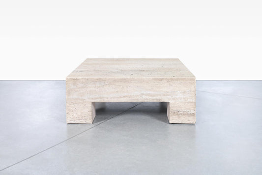 Italian Modernist Live Edge Travertine Coffee Table by Stone International