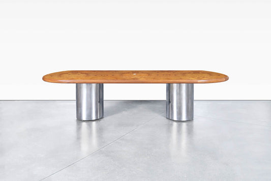 Mid-Century Burl Wood and Chrome Oval Dining Table or Conference Table