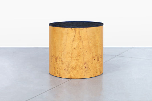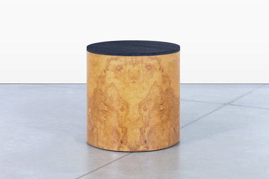 Mid-Century Modern Burl Wood and Granite "Drum" Side Table by Paul Mayen