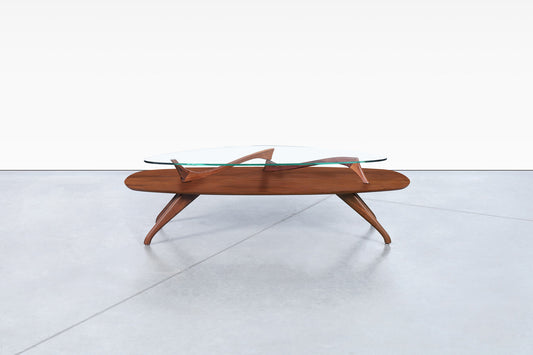 Mid-Century Walnut and Glass Biomorphic Coffee Table by Harvey Probber