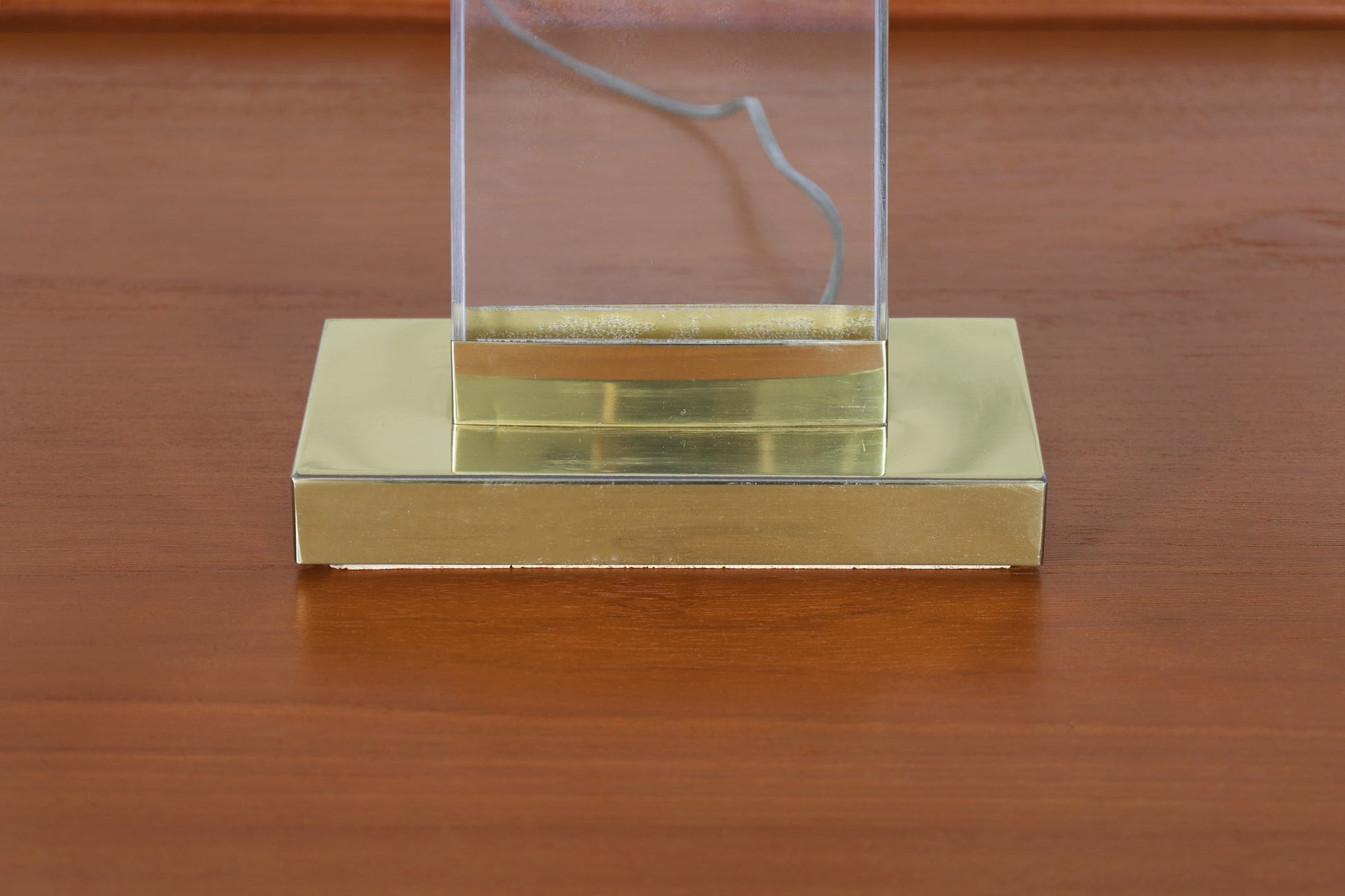 At the heart of each lamp is a thick lucite column that not only provides a striking contrast but also enhances the overall design with its modern appeal. The refined brass details beautifully complement the lucite, showcasing the meticulous attention to detail that Italian craftsmanship is renowned for.
