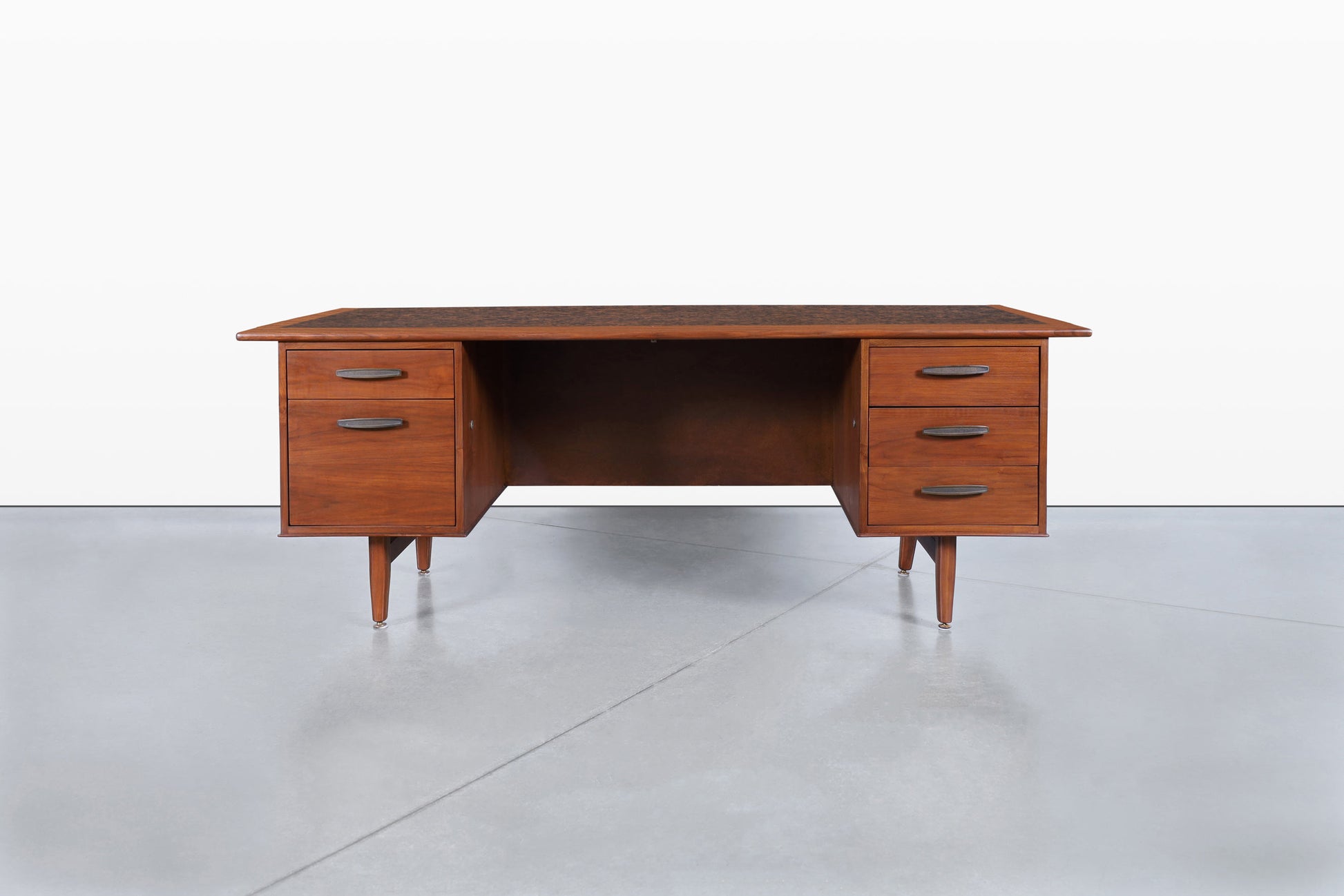 Mid-Century Modern Walnut Executive Desk Attributed to Monteverdi Young