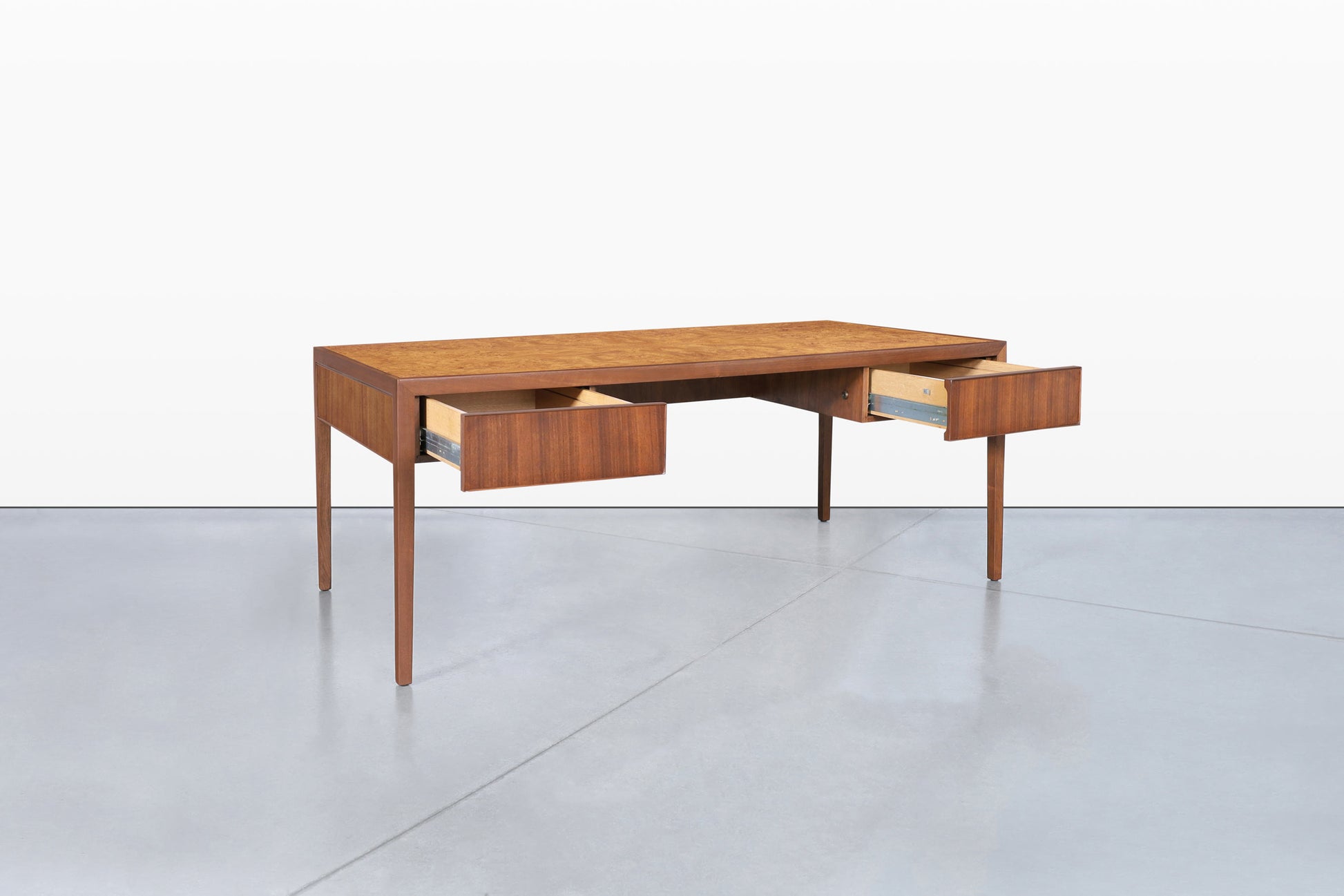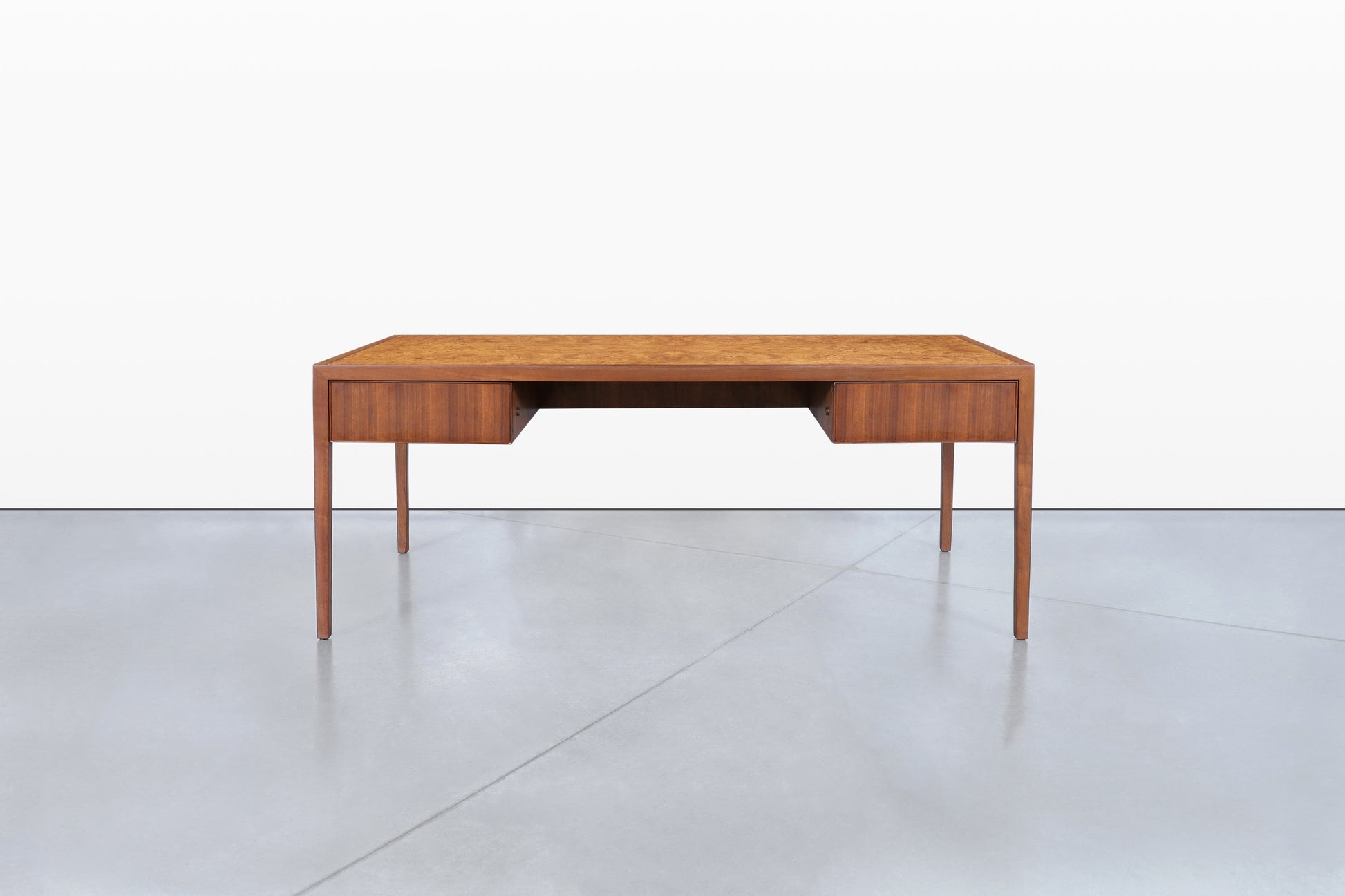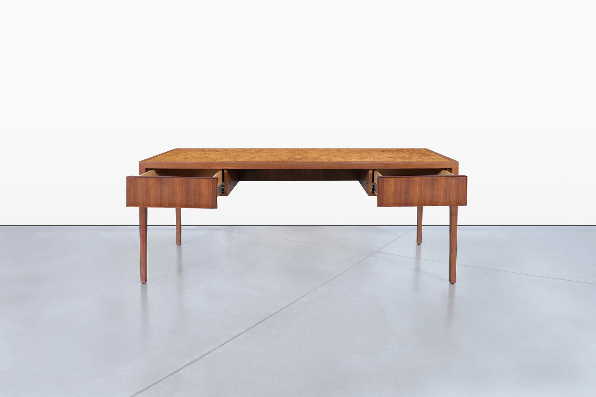 Mid-Century Walnut and Burl Wood Executive Desk by Stow Davis