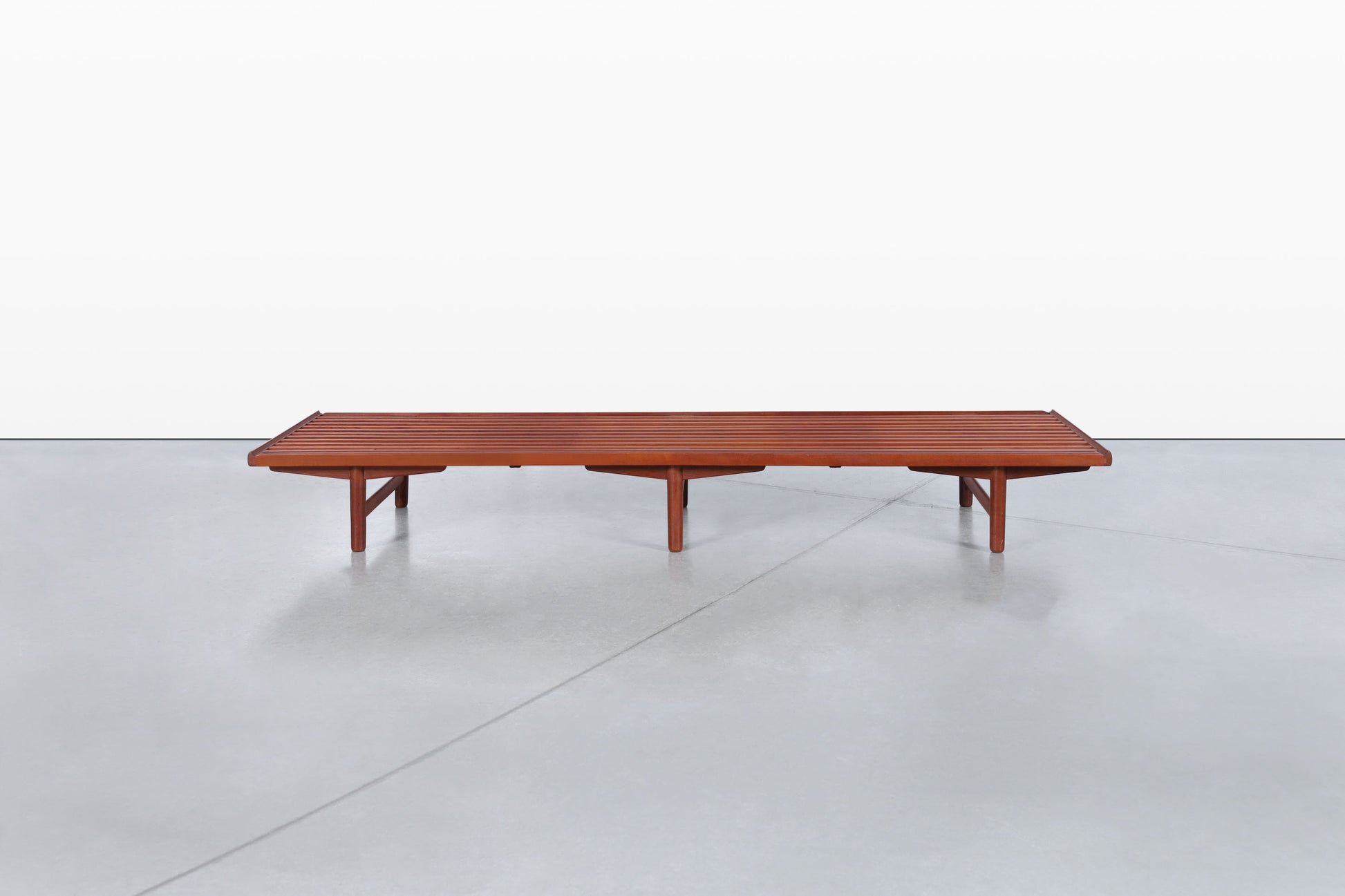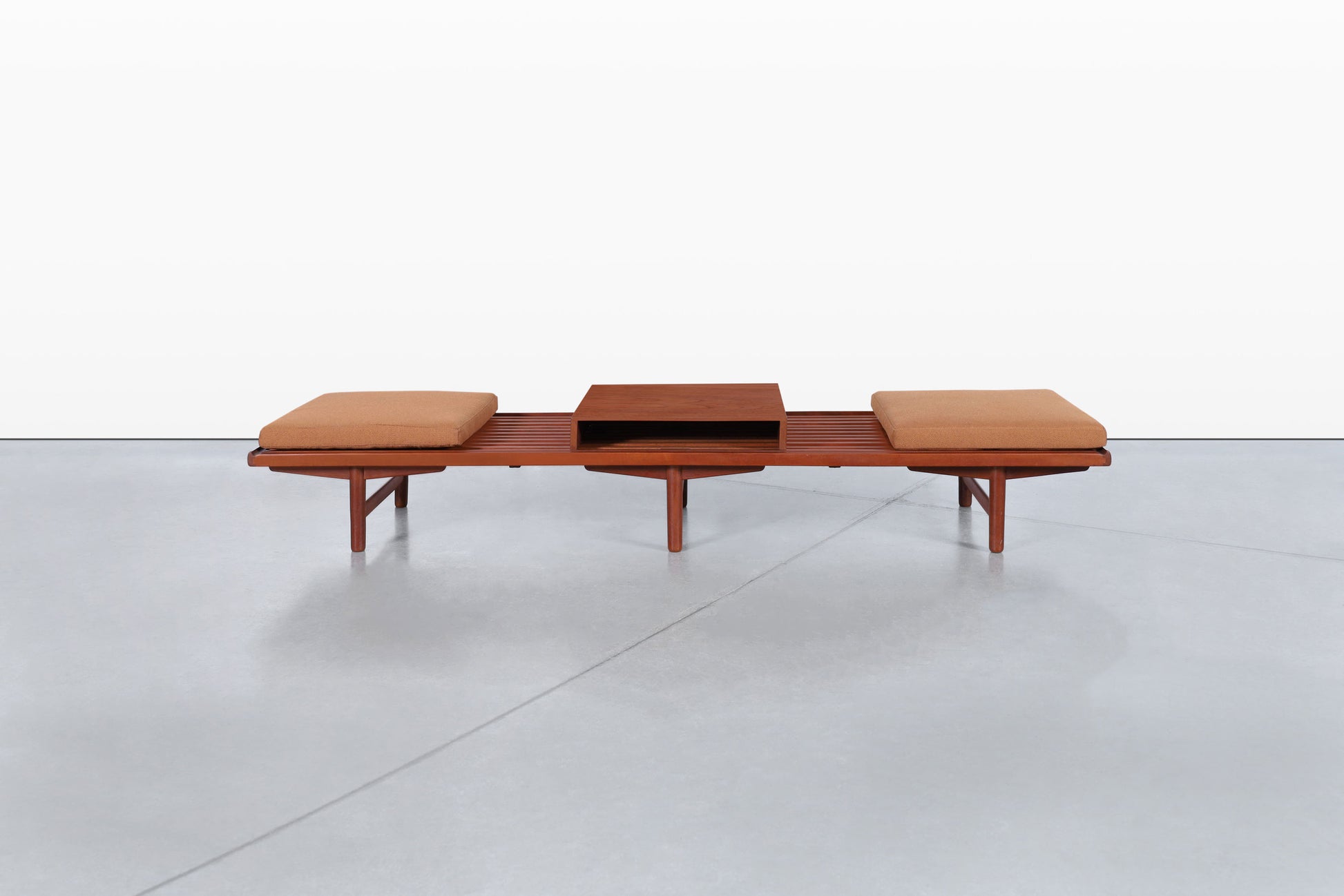 Imagine a beautifully crafted vintage teak bench/coffee table that embodies both elegance and versatility, designed by the talented Gerhard Berg and manufactured by P.I. Langlo Fabrikker, later exported under the Westnofa brand. This rare piece stands out not just for its stunning appearance, but also for its unique modular design that allows you to customize it to fit your space perfectly.