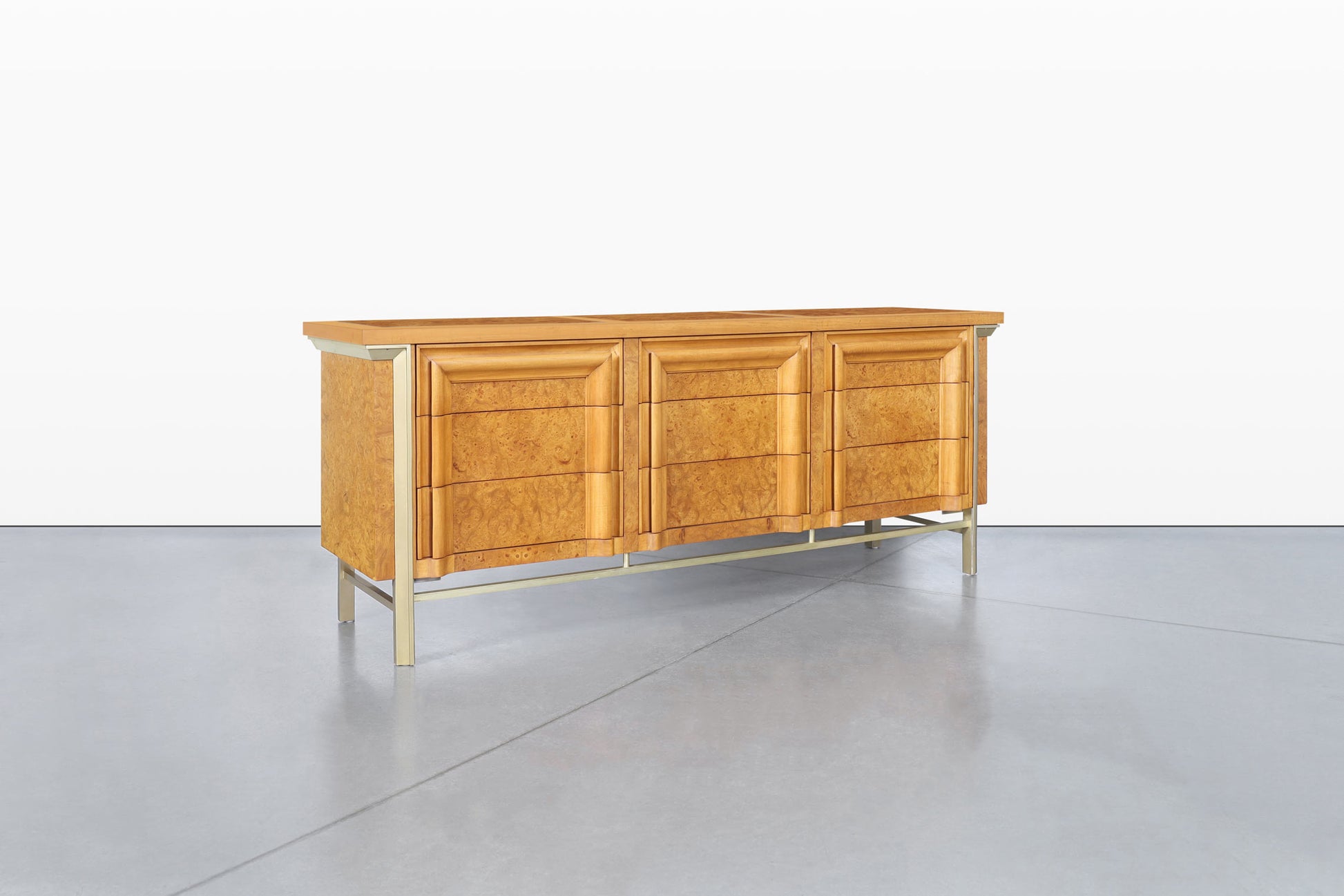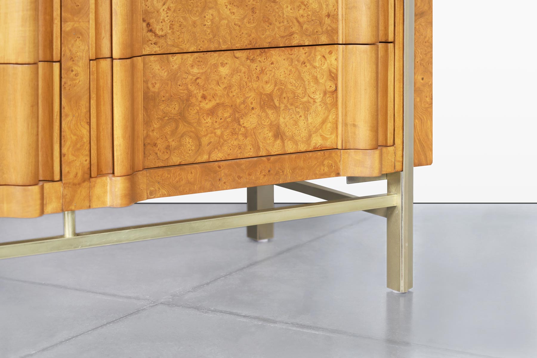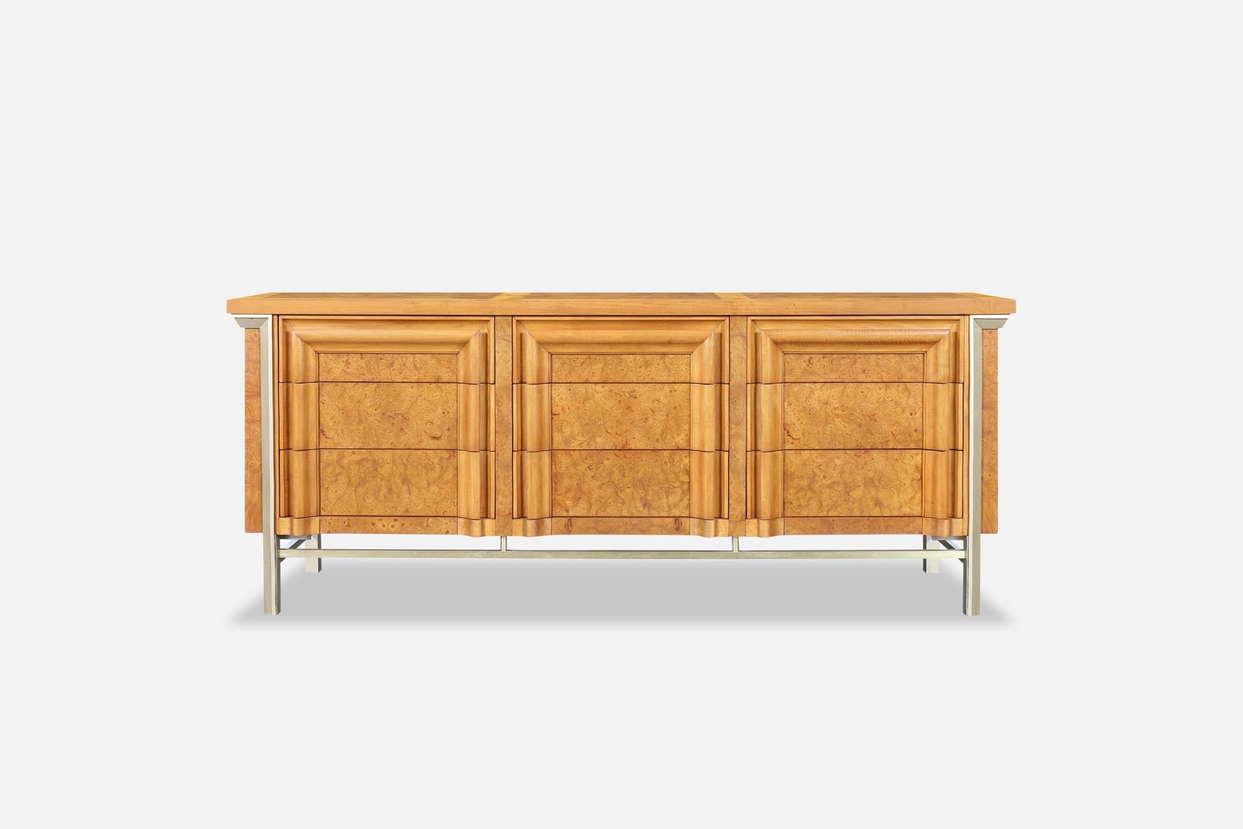 Vintage Burl Wood and Brass Dresser by J.L. Metz