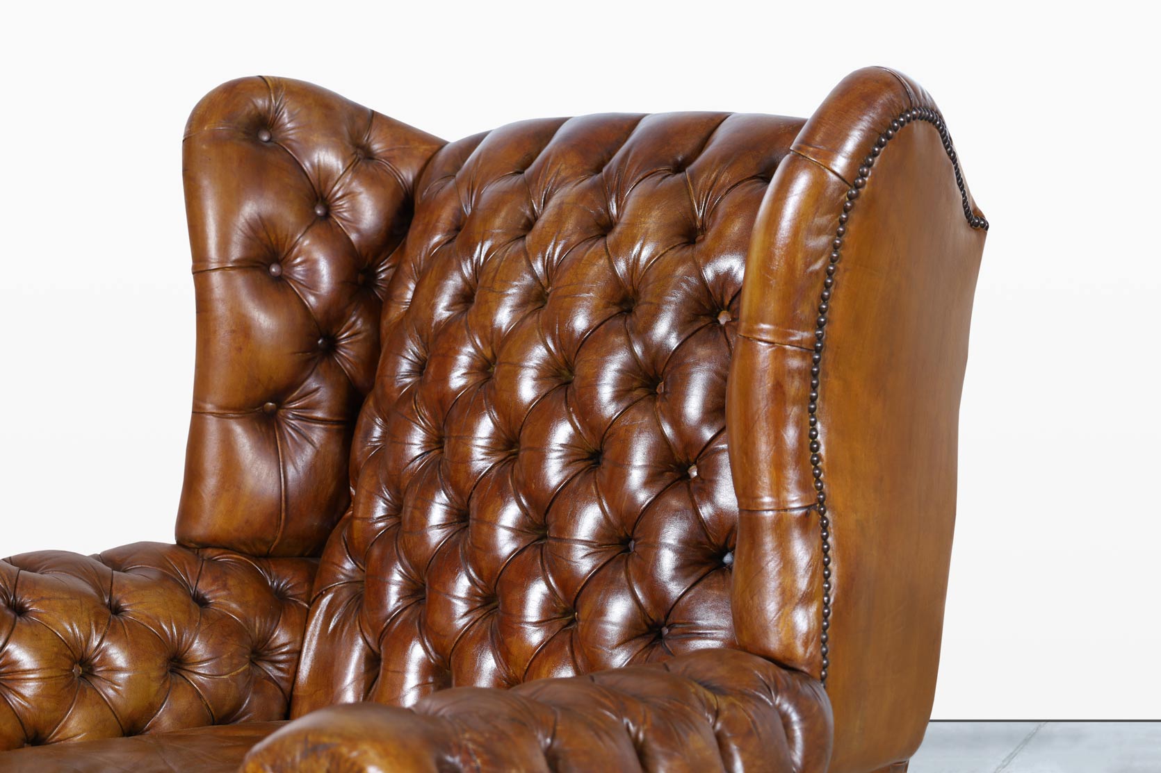Vintage English Wingback Leather Chesterfield Lounge Chairs