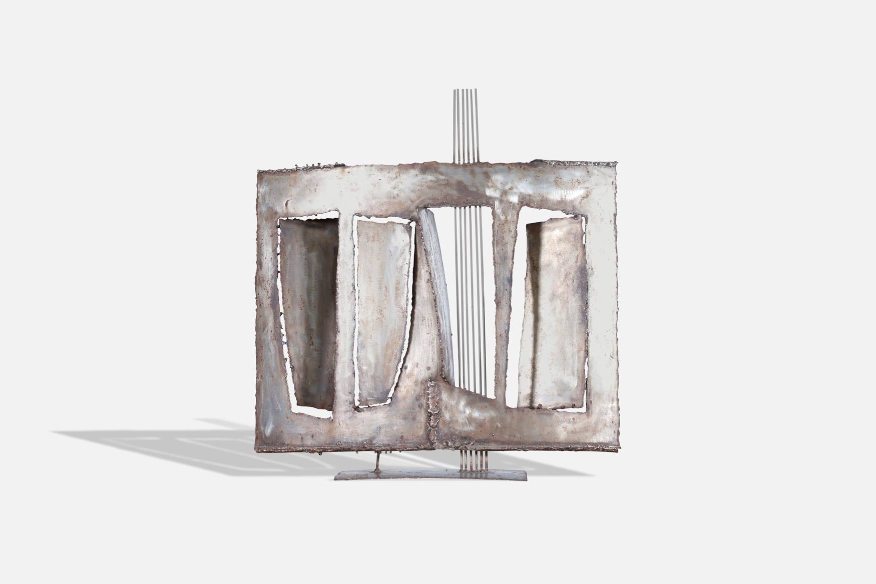 Vintage Oversized Brutalist Metal Sculpture by John Balossi, Signed