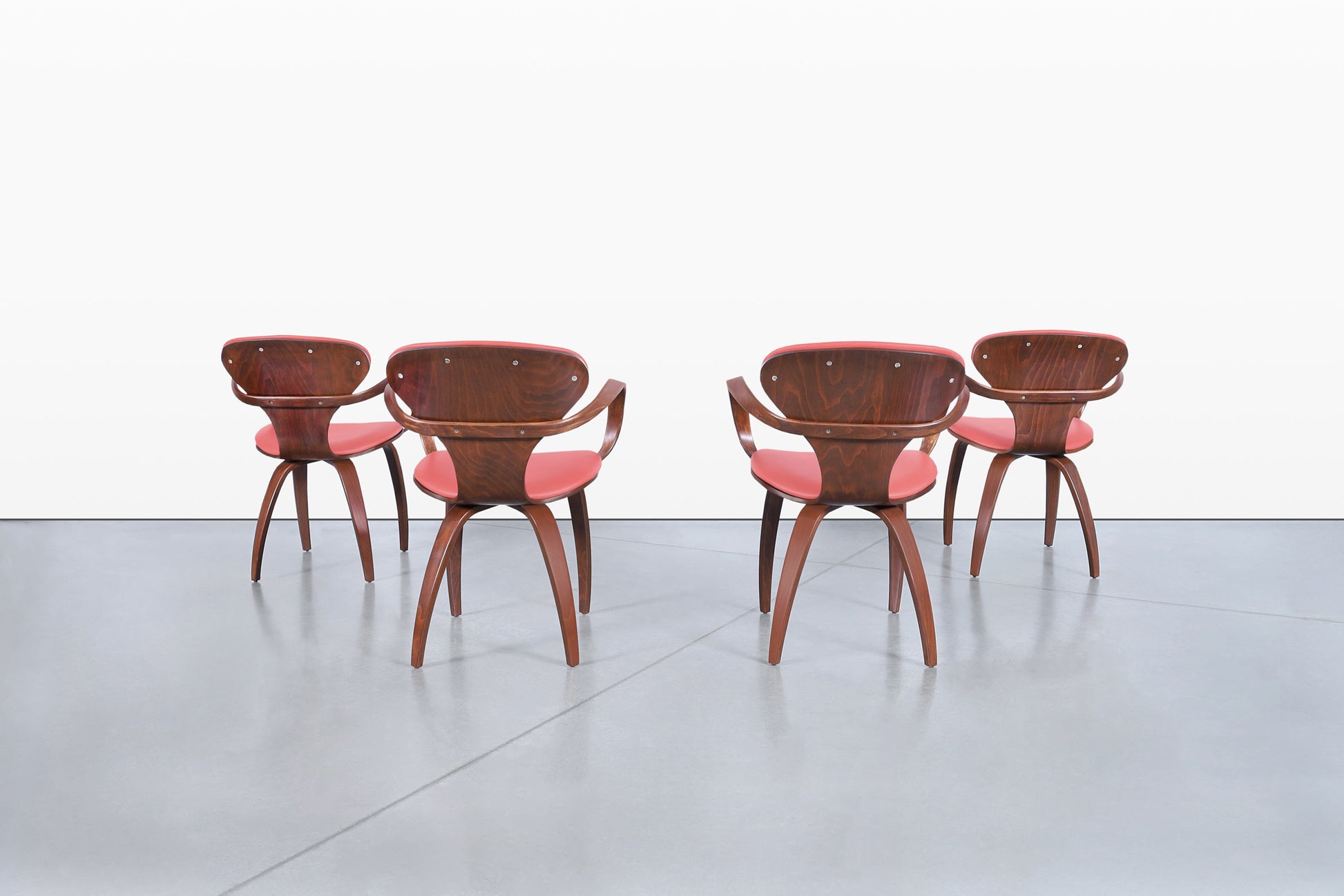 Immerse yourself in the elegance of the 1980s with these exquisite vintage "Pretzel" armchairs, masterfully designed by Lou App for Plycraft. The moment you lay eyes on these chairs, you’ll appreciate the stunning interplay of form and function they offer. Their unique molded plywood frame artfully mimics the shape of a pretzel, creating a visually captivating design that stands out in any space.