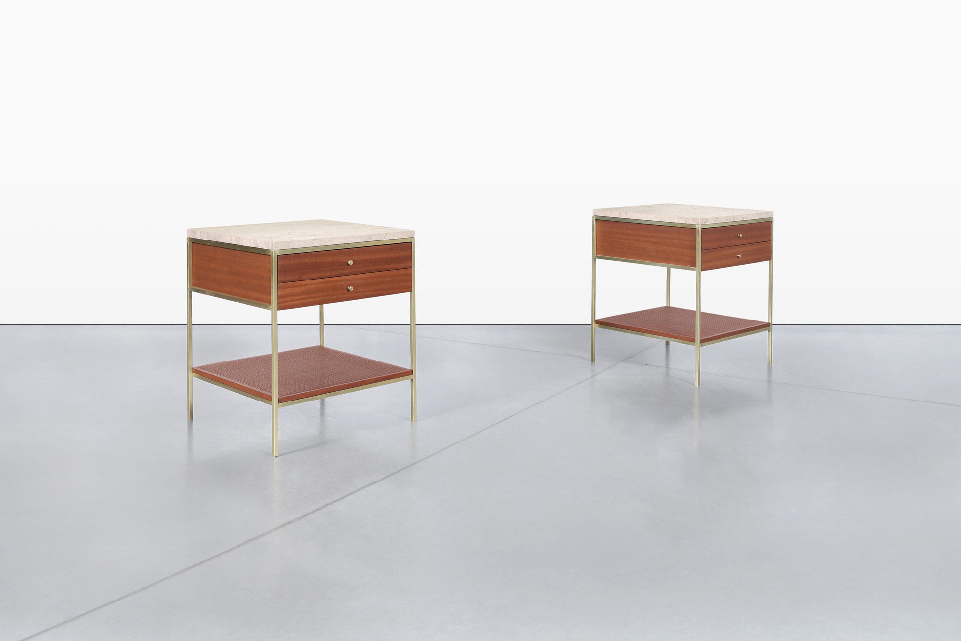 Vintage Travertine and Mahogany “Irwin Collection” Nightstands by Paul McCobb