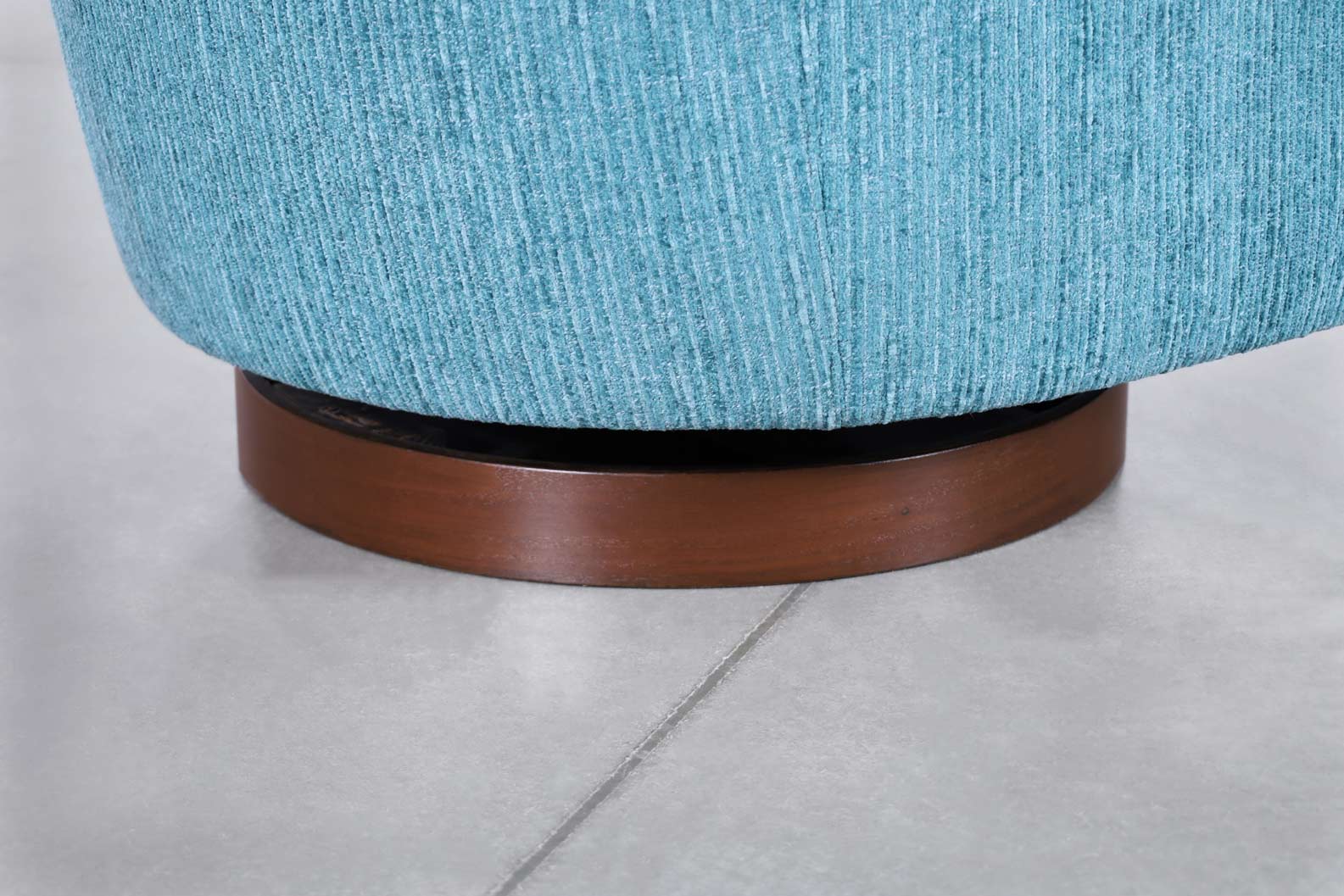 These chairs feature a smooth walnut swivel base that not only rotates 360 degrees but also tilts, allowing you to effortlessly adjust your seating position. They’ve been newly refinished to accentuate the rich, natural tones of the walnut, bringing out the warmth and beauty of the wood.